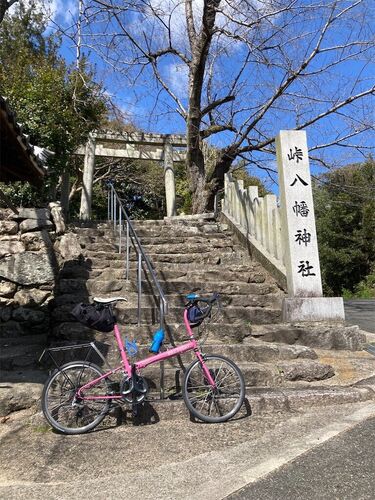 BikeFriday Pocket Pilotに乗って、柏原市方面へ。途中、峠八幡神社の前を通る。 石川河川敷が、カラクルの試乗会場だ。 参加者の自転車もぶら下がってる駐輪スペース 案内用イラスト 盛り沢山の試乗車達 これがとても小さく畳めるのだ エアロな形状の小径折…