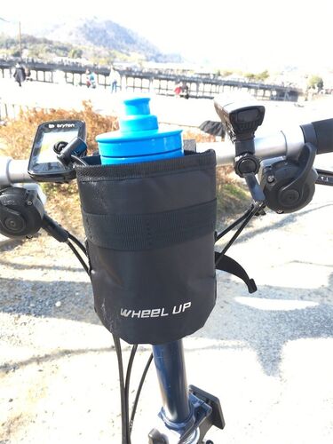 結局これにしました。 Amazonで購入したのだけど、Htwonというブランドで、WHEEL UPと書いてあります。 注文履歴によると商品名は、「Htwonハンドルバッグ フロントバッグ フレームバッグ 自転車用バッグ サイクリングバッグ 多機能 防水 大容量 軽量 クロス…